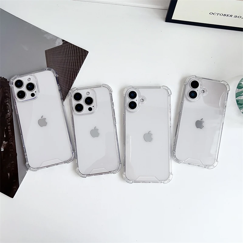 Luxury Transparent Shockproof Armor Case For iPhone 16 15 14 13 12 11 Pro XS Max XR 7 8 Plus Silicone Bumper Hard Acrylic Cover